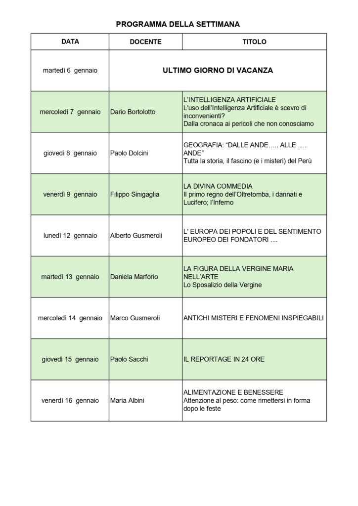 Giovedì 8 gennaio ci sarà un cambiamento nel programma: