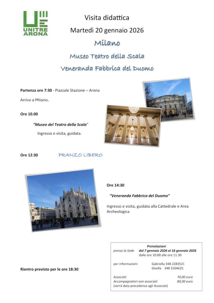 - Arrivo a Milano e visita guidata al Museo della Scala alle ore 10:00.