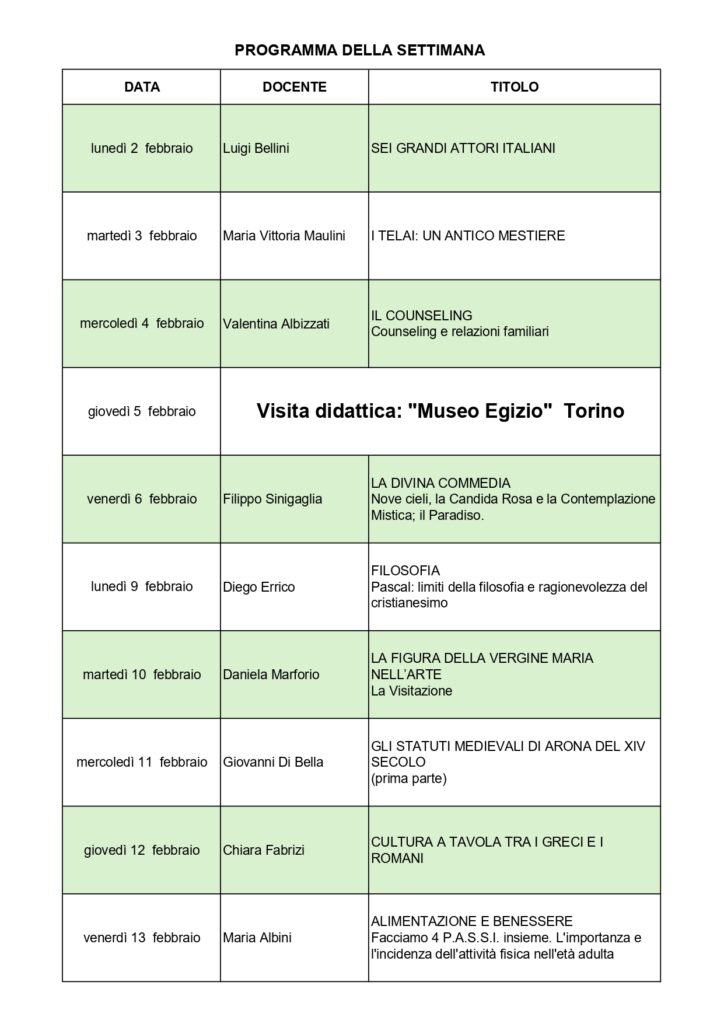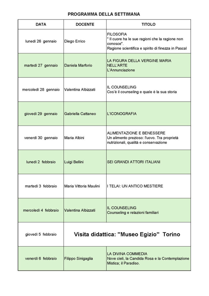 - Giovedì 12 marzo, Bianca Lavatelli: IMMAGINI NELL’ARTE (invece di Chiara Fabrizi)