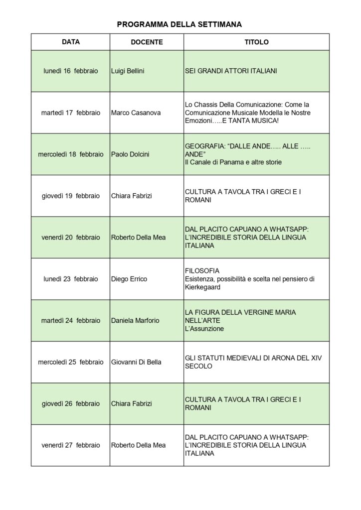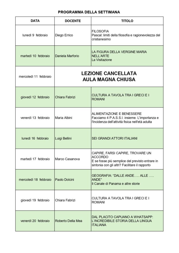 - Giovedì 19 febbraio, Chiara Fabrizi: CULTURA A TAVOLA TRA I GRECI E I ROMANI (invece di Bianca Lavatelli)