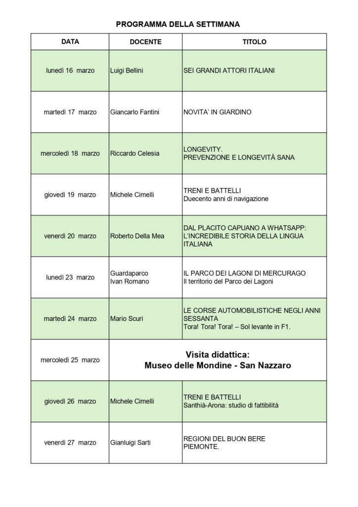 - Giovedì 26 marzo, Michele Cimelli: TRENI E BATTELLI (invece di Chiara Fabrizi)
